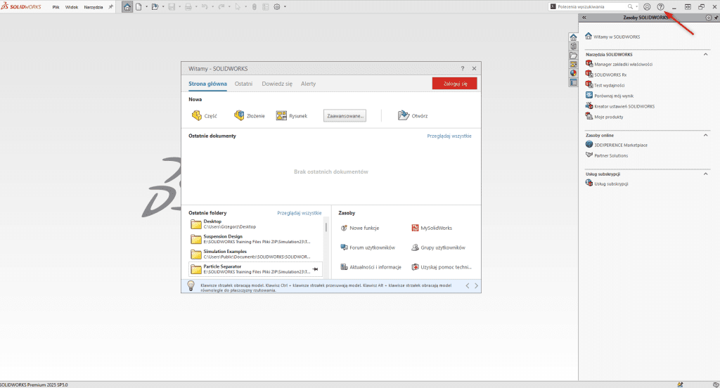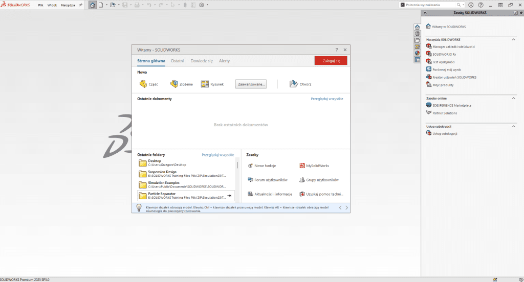 Krok 1 – Uruchom program SOLIDWORKS